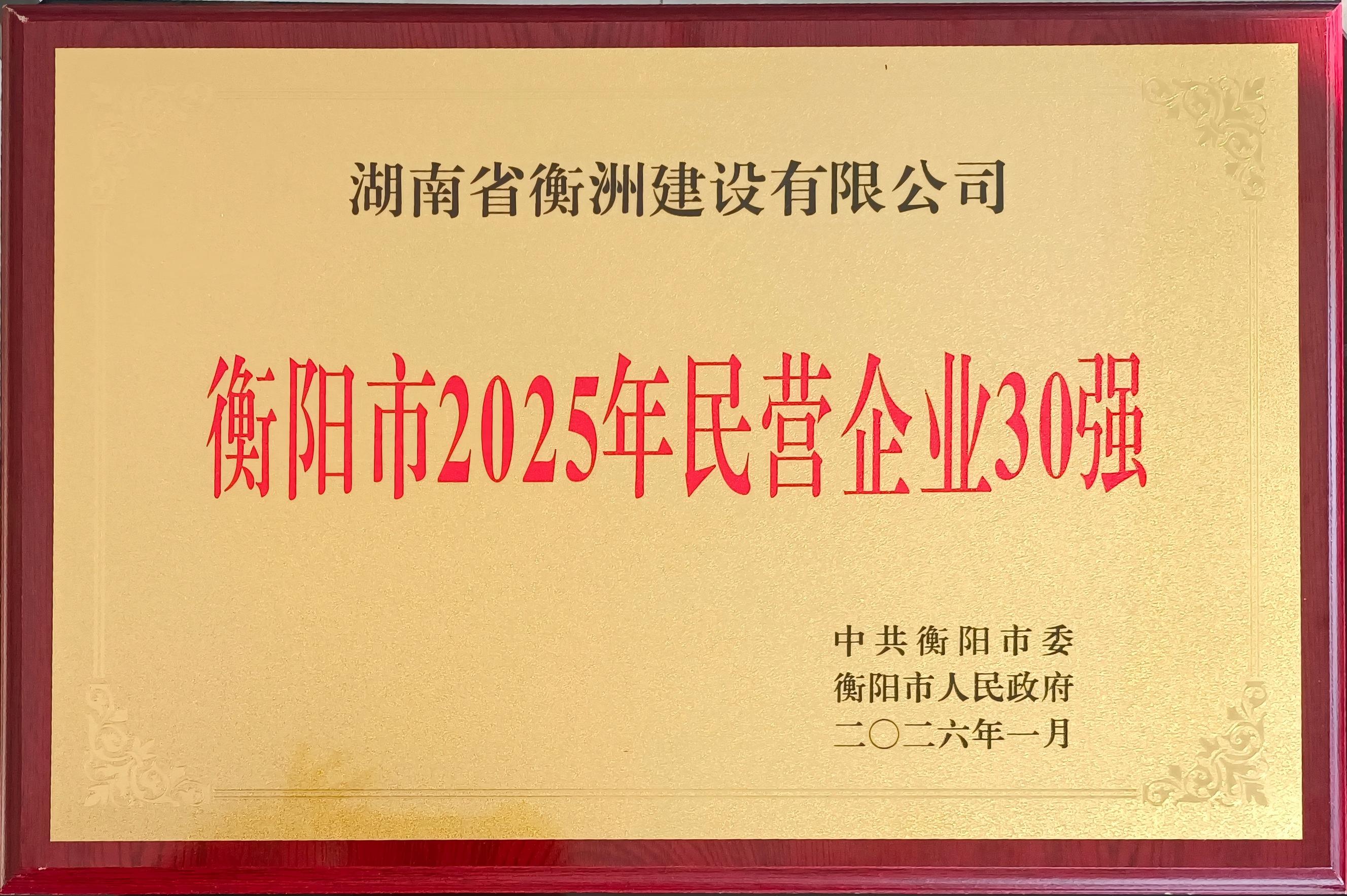 大会现场发布了“2025年度衡阳市民营企业30强”等权威榜单。衡洲建设凭借持续稳健的经营表现、扎实的技术创新能力